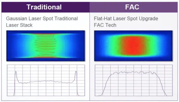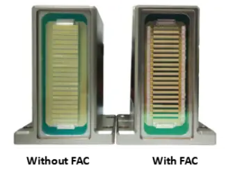 ডায়োড লেজারগুলি সাধারণত উচ্চ, অসমমিতিক বিচ্যুতির কারণে, বিশেষ করে দ্রুত অক্ষে অকার্যকর। FAC প্রযুক্তি একটি উচ্চ-সংখ্যাসূচক অ্যাপারচার (NA≈0.8) নলাকার লেন্স সরাসরি লেজার ইমিটারের সামনে স্থাপন করে, একটি সমন্বিত,, উচ্চ-তীব্রতার মরীচি তৈরি করে এর সমাধান করে।